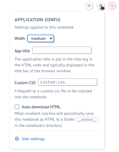 .marimo.tomlfile can be version controlled to share configurations across teams - App configurations can be committed with notebooks to ensure consistent appearance
