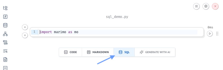 marimo will auto-discover the engine and let you select it in the SQL cell's connection dropdown.